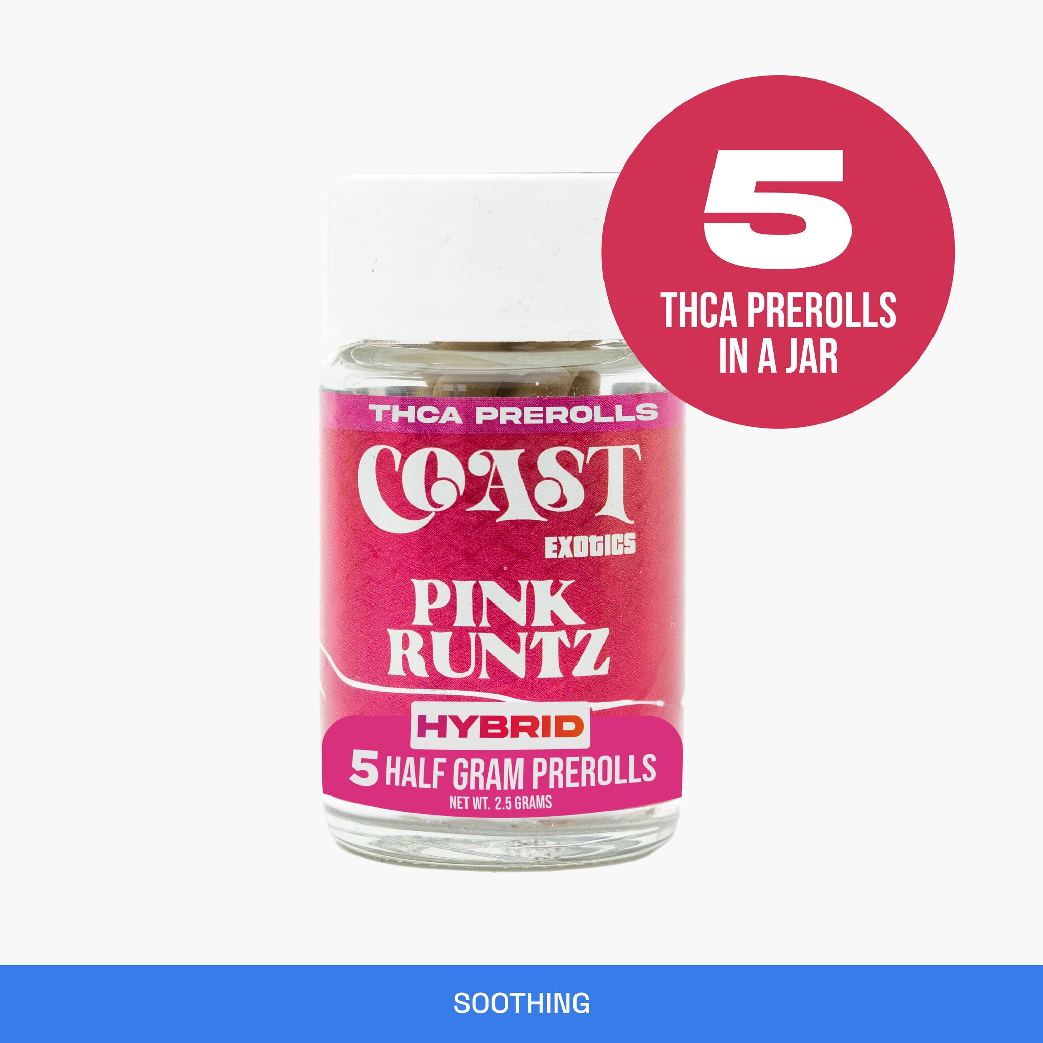 THCA Mini Prerolls - 0.5g Prerolls Kief Rolled - Pink Runtz 5pk